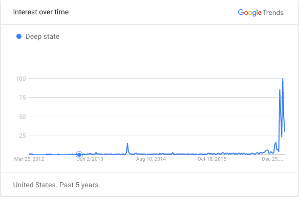 As this chart from Google Trends illustrates, interest in the Deep State has increased dramatically in 2017. The term/topic has clearly moved from the specialist realm to the mainstream. I’ve been writing about the Deep State, and specifically, the fractures in the Deep State, for years.