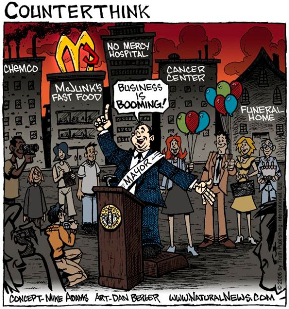 In fact, a mess of emotions that transforms us into the perfect consumers, buying more of this cheap, harmful “food”. That boosts both the profits of food and other corporations and the electoral fortunes of crowd-pleasing, money-grubbing, vacuous politicians who wish to serve those corporations.