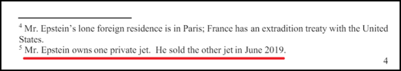 While prosecutors claimed that Epstein owns two private jets, the registered sex offender’s attorneys said in a court filing earlier this month that he owns one private jet, and “sold the other jet in June 2019.” Considering that he was arrested after returning from Paris in his Gulfstream G550, per Bloomberg, it suggests that Epstein sold his infamous and evidence-rich Boeing 272-200 known as the “Lolita Express” weeks before his arrest.