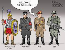 Consider the extent to which the FBI’s far-reaching powers to surveil, detain, interrogate, investigate, prosecute, punish, police and generally act as a law unto themselves resemble those of their Nazi cousins, the Gestapo.