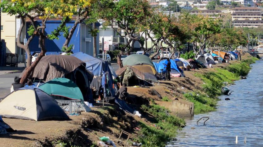 honolulu-tents Published April 28, 2021 at 1400 × 787 in honolulu-tents Homeless people and their tents line a canal in Honolulu in June 2015. Hours after a city crew cleared the banks of the canal, the homeless people that had been living there moved right back to the riverside.