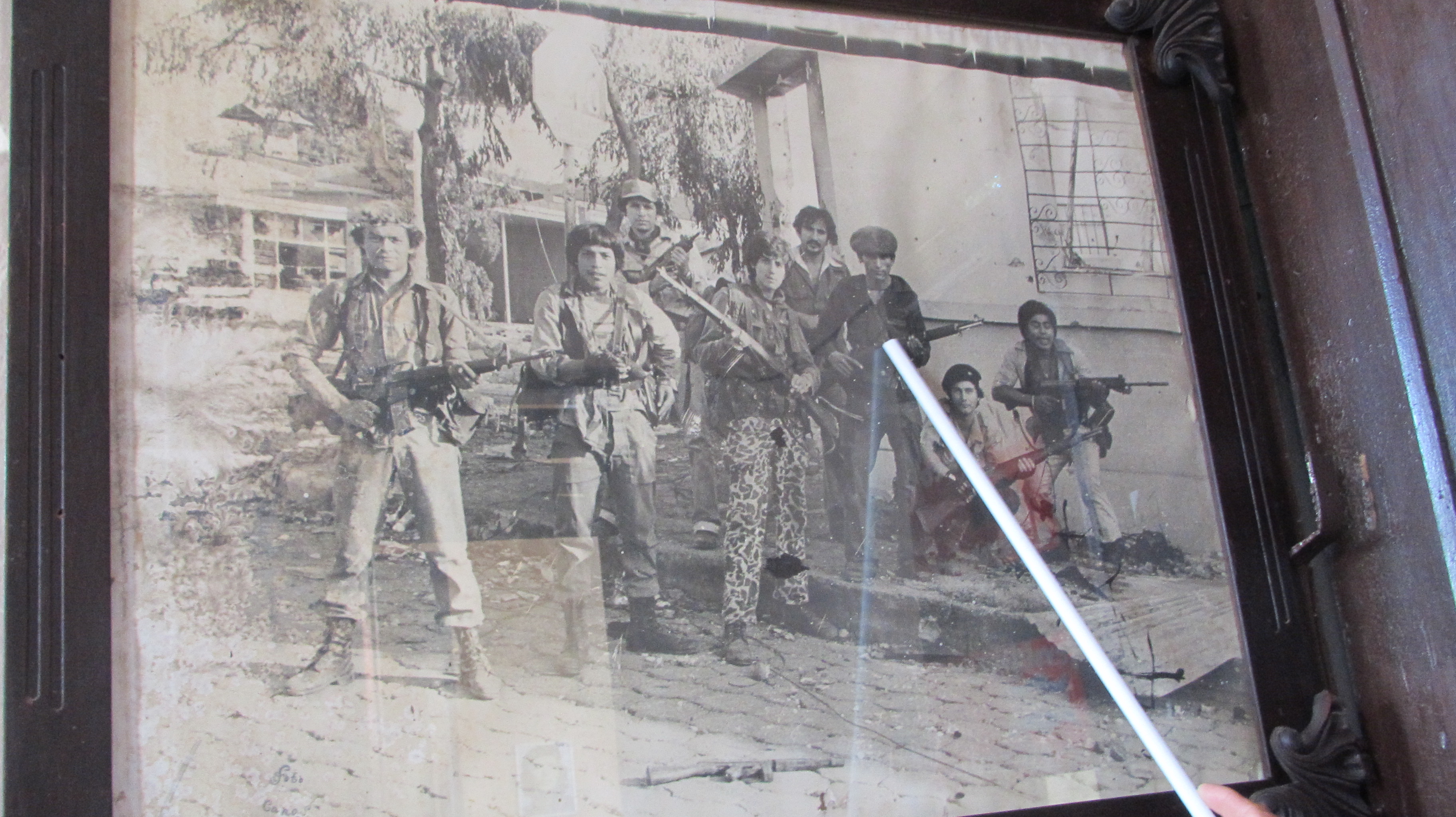 IMG_3978 Published March 3, 2014 at 3648 × 2048 in IMG_3978 The person on the far right is Hugo, my guide through the museum, as a young Sandinista soldier in the 70s. The person pointed at was one of his friends who died in combat.