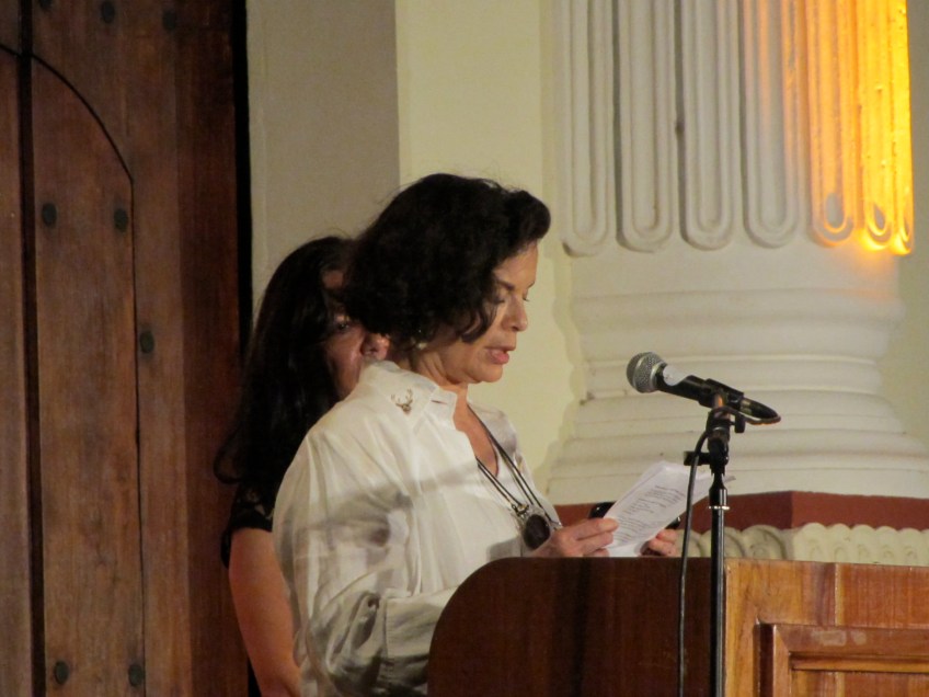 IMG_4364 Published March 3, 2014 at 1824 × 1368 in IMG_4364 Poet and activist (and ex-wife of Mick Jagger) Bianca Jagger reciting a poem on the penultimate night of the International Poetry Festival. (Granada)
