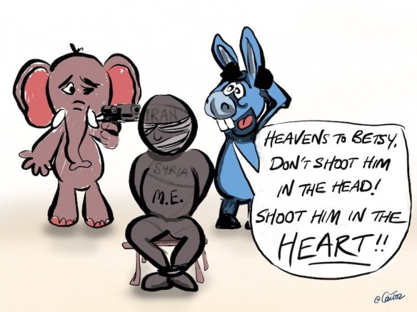 By far the dumbest thing in all of US politics is the fact that Democrats tend to support regime change in Syria, while Republicans tend to support it more in Iran. I am not talking about the elected officials in those parties; I’m talking about the ordinary rank-and-file Joes and Janets who stand absolutely nothing to gain from toppling either Damascus or Tehran, but who have been brainwashed by lifelong media consumption into supporting one or the other anyway.