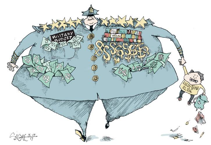 Let me start by telling how much this nation spends on our so-called “defense budget”. This money that we spend isn’t to defend people of the United States, these funds go to enrich the defense contractors and the people who fund our politicians in Congress.