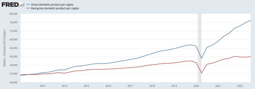 GDP is primarily driven by spending. Meaning, the higher inflation goes, the higher prices go, and the higher GDP climbs (to a point). Eventually prices go too high, credit cards tap out and spending ceases. But, for a short time inflation makes GDP (as well as retail) look good.