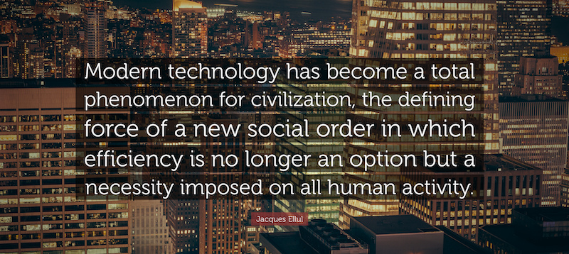 “A principal characteristic of technique … is its refusal to tolerate moral judgments. It is absolutely independent of them and eliminates them from its domain. Technique never observes the distinction between moral and immoral use. It tends on the contrary, to create a completely independent technical morality.” (1)
