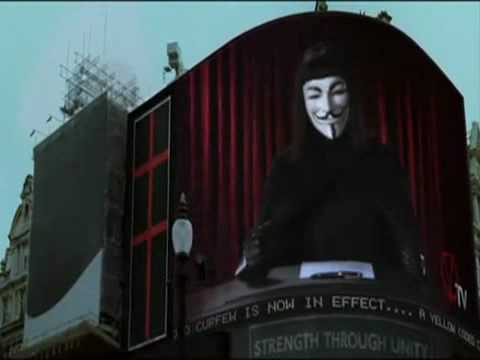With Vendetta, whose imagery borrows heavily from Nazi Germany’s Third Reich and George Orwell’s 1984, we come full circle. The corporate state in V conducts mass surveillance on its citizens, helped along by closed-circuit televisions. Also, London is under yellow-coded curfew alerts, similar to the American government’s color-coded Homeland Security Advisory System.