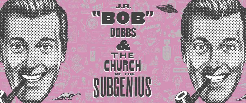 You couldn’t escape his ubiquitous mug back when Austin was truly weird. It appeared on bumper stickers, bulletin boards, telephone poles, streetlights, bathroom walls, and more: A perfectly coiffed and lantern-jawed 1950s dad, his perfectly straight teeth clenching a pipe in an ear-to-ear grin worthy of Ward Cleaver. Although his face archetypically evoked white, middle-class, heterosexual Christian conformity, J.R. ‘Bob’ Dobbs (note the mandatory quotation marks) served as the symbol of something completely different from post-war homogeneity. He was the appointed figurehead of the Church of the SubGenius, a somewhat wacky “religious” (more quotation marks, but subjectively imposed) organization formed to counter the “conspiracy of normalcy” pervading American society. Initially hatched in the playfully demented minds of two Dallas-area merry pranksters, Reverend Ivan Stang and Dr. Philo Drummond (née Douglass St. Clair Smith and Steve Wilcox, respectively), in the late Seventies, the Church was intended as a dogmatic antidote to a re-emergent mediocrity, embracing an aesthetic in confluence with evolving new wave sensibilities and tropes in music, film, and pop culture. It was an in-joke with a half-serious punchline.