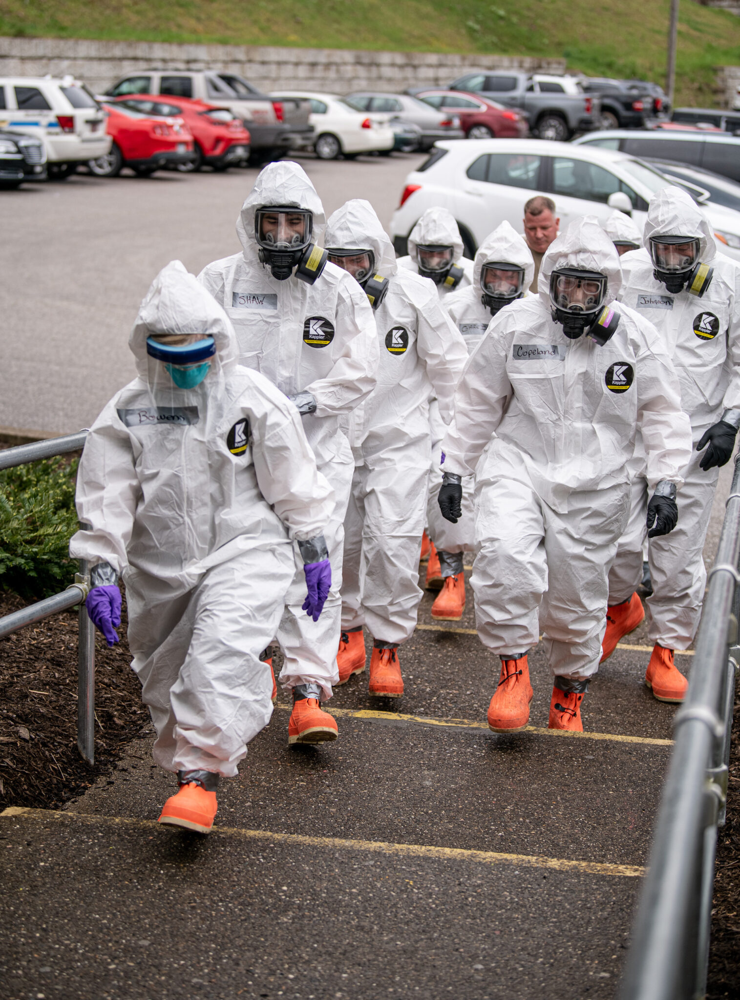 West Virginia National Guard members reporting to a Charleston nursing home to assist with Covid-19 testing. April 6, 2020. (U.S. Army National Guard, Edwin L. Wriston)
