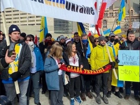 On Feb. 27, 2022, Canadian Deputy Prime Minister Chrystia Freeland held a scarf bearing the slogan “Slava Ukraini,” meaning “Glory to Ukraine,” with the “Blood and Soil” colors of the Ukrainian Insurgent Army (UPA) (who collaborated with the Nazis during WWII and massacred thousands of Jews and Poles).