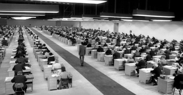 “Before the Law” describes a grimly absurd situation, as does Welles’ The Trial, the film to which it serves as an introduction. Adapted from another work of Kafka’s, specifically his best-known novel, it also concerns itself with the legal side of human affairs, at least on the surface. But when it becomes clear that the crime with which its bureaucrat protagonist Josef K. has been charged will never be specified, the story plunges into an altogether more troubling realm. We’ve all, at one time or another, felt to some degree like Joseph K., persecuted by an ultimately incomprehensible system, legal, social, or otherwise. And can we help but feel, especially in our highly mediated 21st century, like Plato’s immobilized human, raised in darkness and made to build a worldview on illusions? As for how to escape the cave — or indeed to enter the law — it falls to each of us individually to figure out.